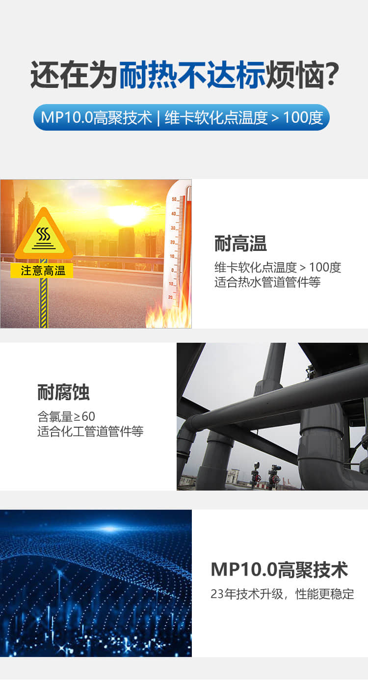 經測試金立達CPVC維卡軟化點溫度大于100度,可廣泛試用于熱水管件閥門及管子、消防管子及接頭、化工污水處理等管接頭閥門等等,其良好的耐熱性能、優異的耐腐蝕能力,深受廣大客戶一致好評!