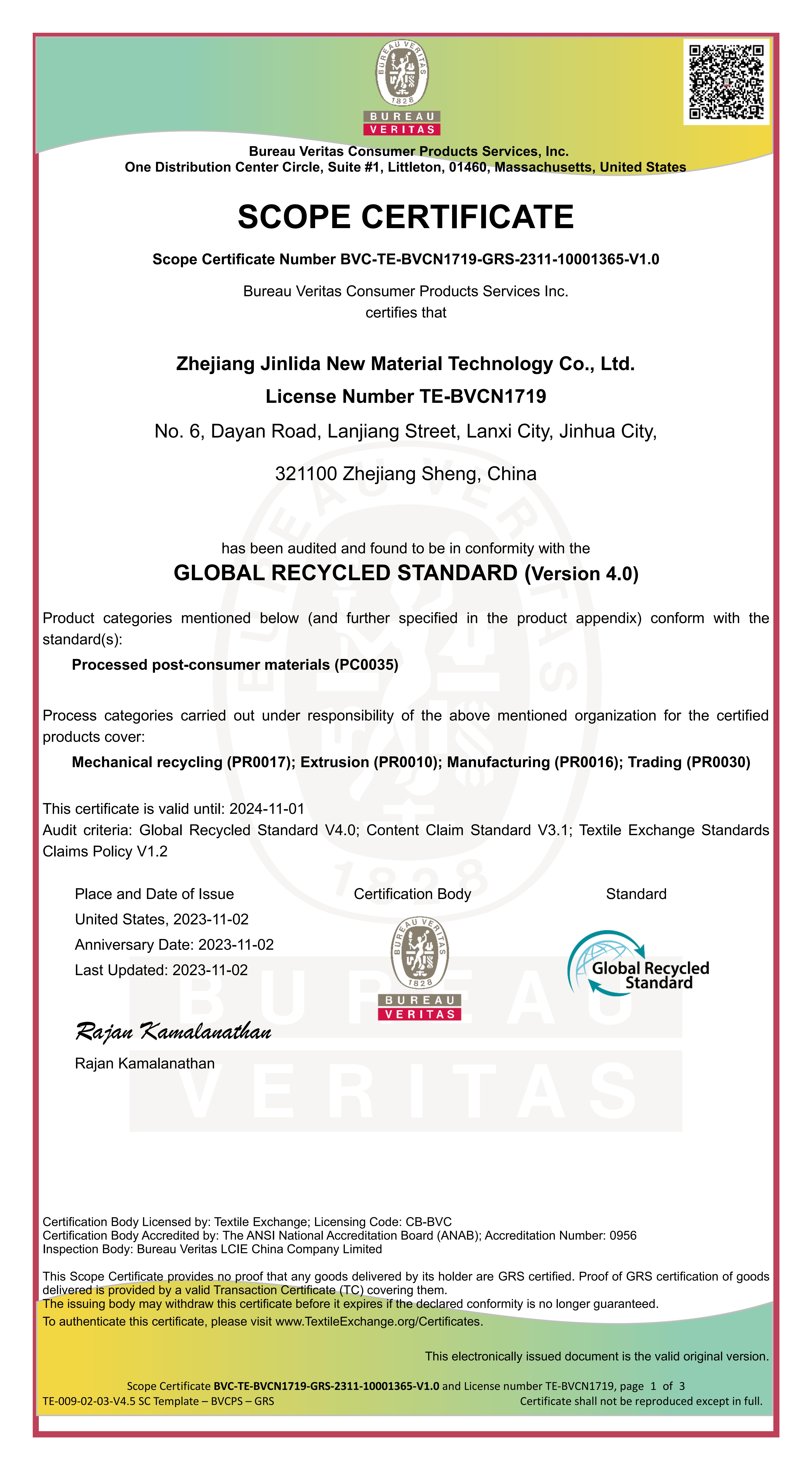 浙江金立達(dá)新材料科技股份有限公司近日成功辦理了GRS認(rèn)證,這標(biāo)志著該公司在可持續(xù)發(fā)展和社會責(zé)任方面取得了重要進(jìn)展。